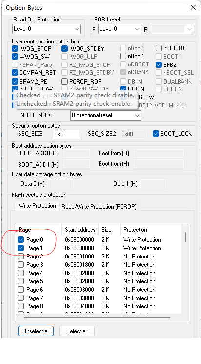 发现扇区0.1被锁住,取消勾选,再点击apply就行。我买的不是全新的吗?????